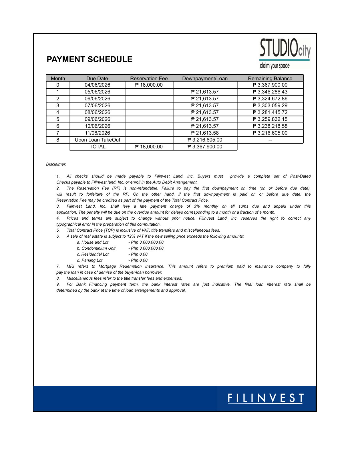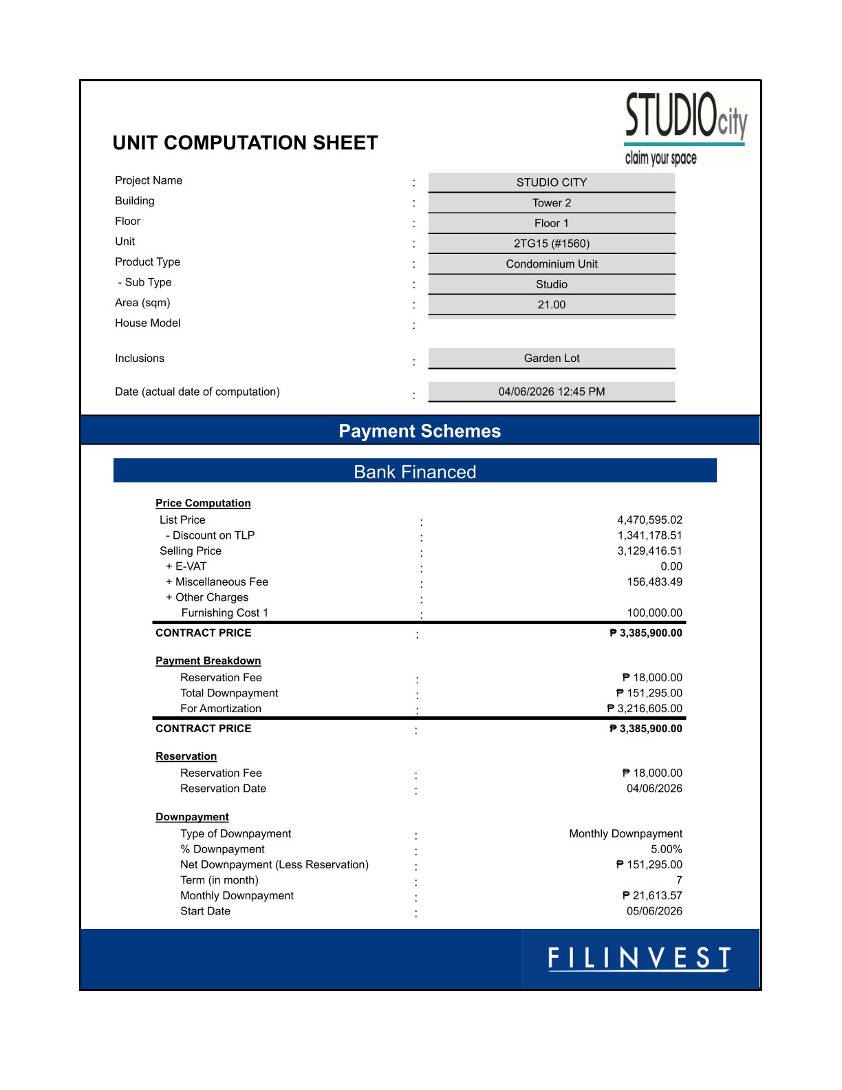 Filinvest Studio City 콘도 분양 관련 유닛 정보, 최신 가격, 프로모션 및 페이먼트 플랜은 별도 문의를 통해 상세 안내드리고 있습니다.