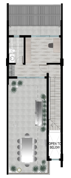넓은 오픈형 거실, 주방, 다이닝 공간으로 구성되어 있으며, 최대의 공기 흐름을 위한 전략적인 창 배치와 레이아웃이 적용되었습니다.