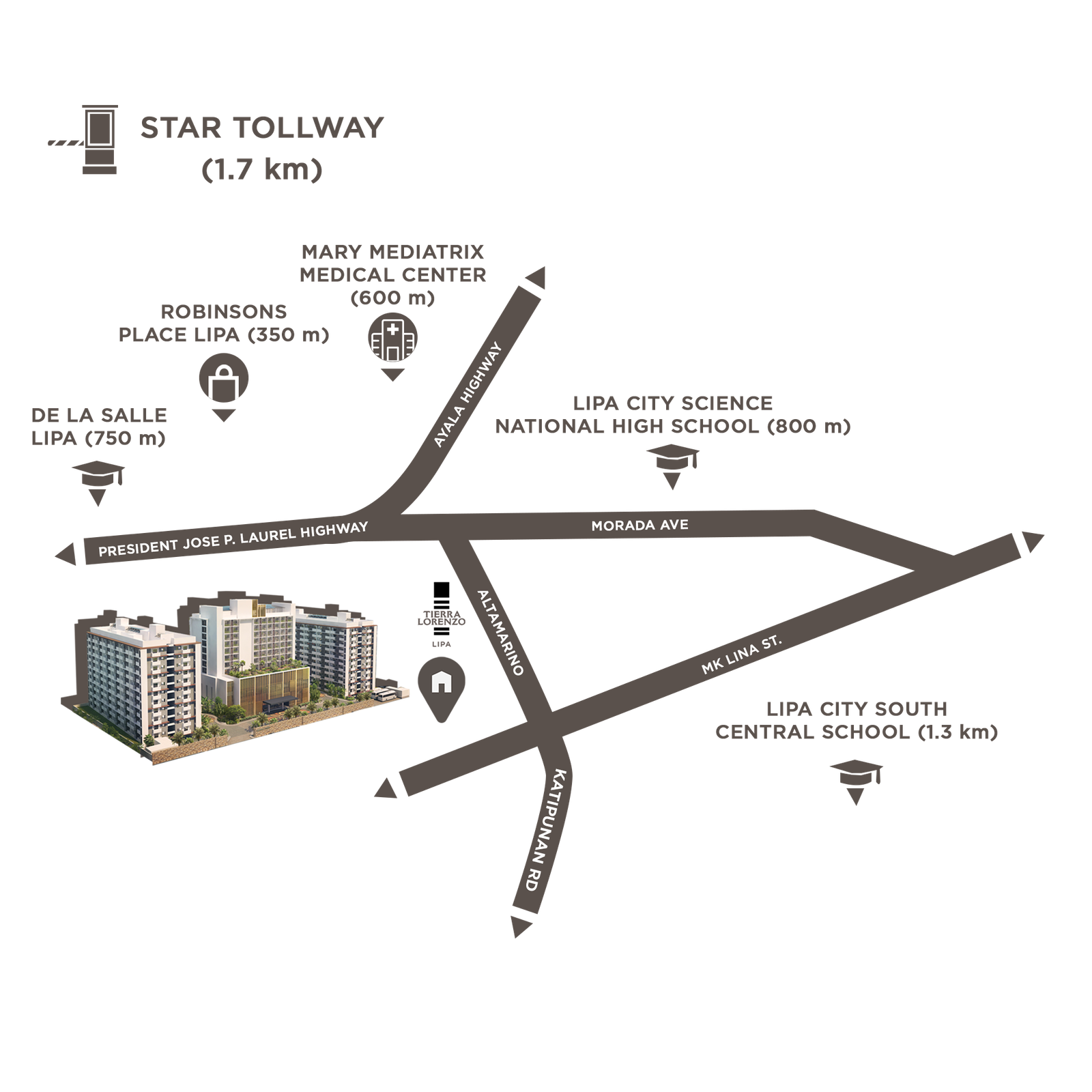 통합 개발 단지인 티에라 로렌조 리파에는 이미 입주 가능한(RFO) 주거 타워인 아드리아(Adria)와, 바탕가스 최초의 국제 브랜드 호텔인 두싯 프린세스 리파(Dusit Princess Lipa)가 함께 조성될 예정입니다.