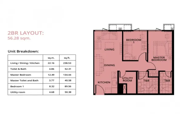 | 투베드룸 유닛 (Two Bedroom Unit) | 2 | 1 | 56 | ₱ | 문의 요망 |