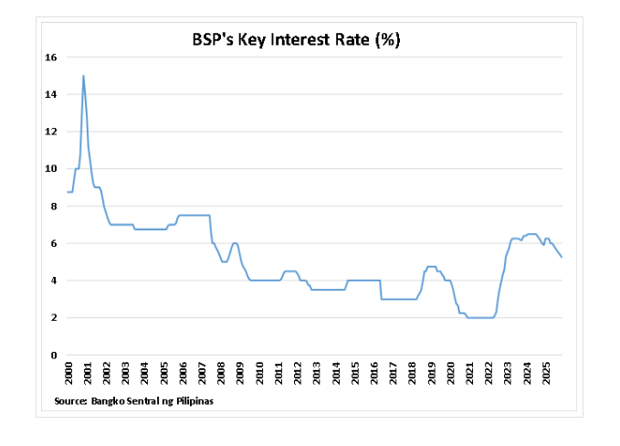 2025년 12월, BSP 통화위원회는 정책금리인 목표 역환매조건부금리(Target RRP Rate)를 추가로 25bp 인하하여 4.50%로 조정했다. 단기 예금 및 대출금리도 각각 4.0%와 5.0%로 인하되었다.