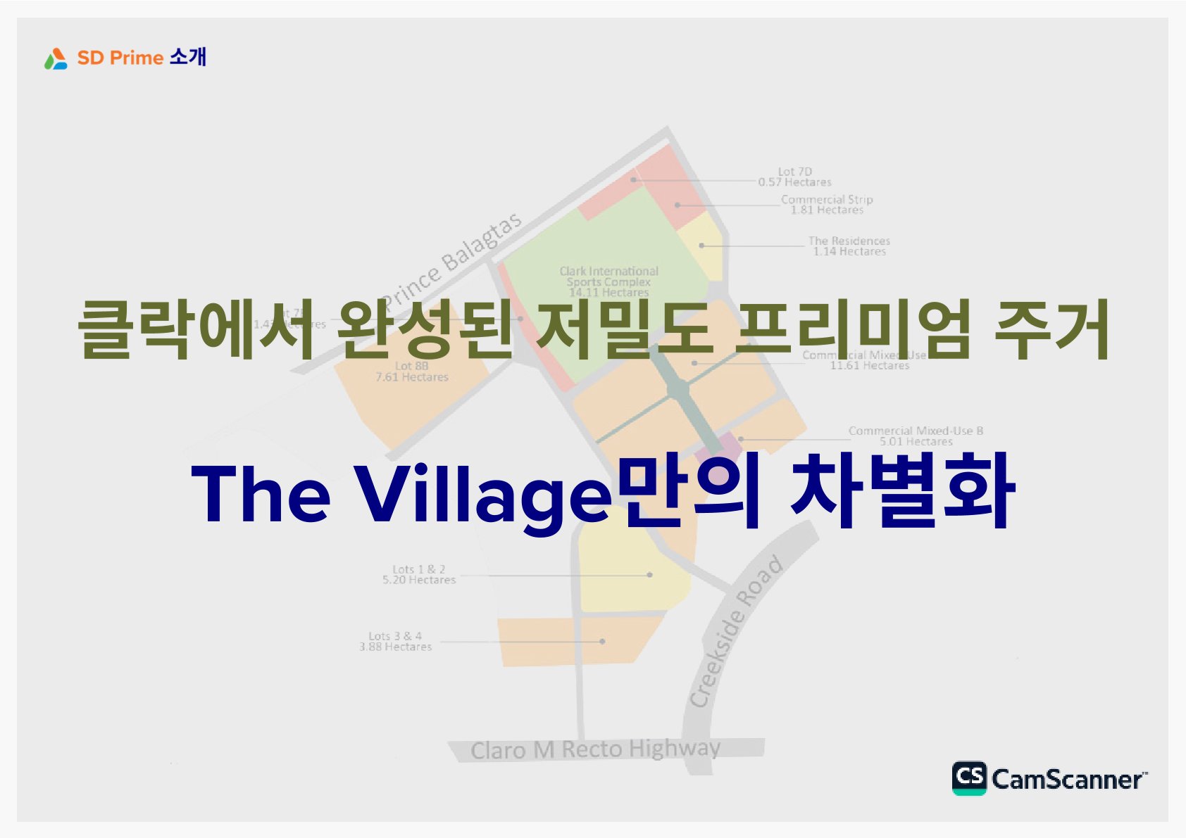 필리핀의 대표 경제특구 **Clark Freeport Zone**에 위치한 프리미엄 주거 프로젝트 The Villages by SD Prime 콘도 분양을 소개합니다.