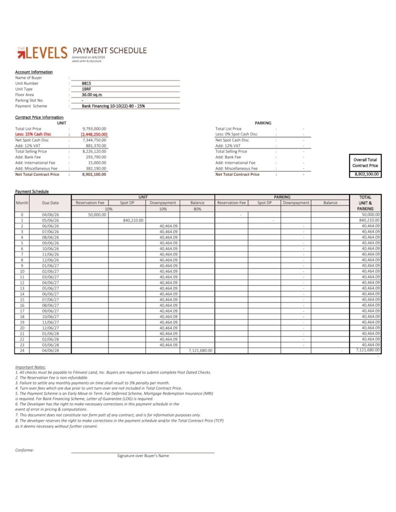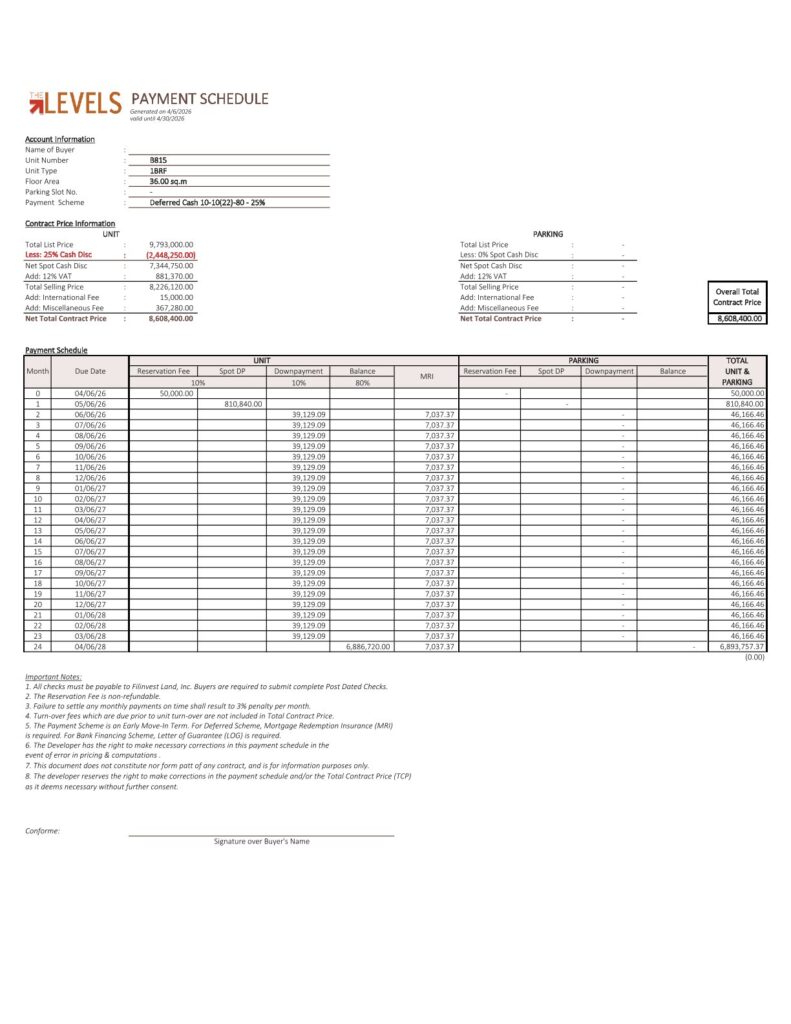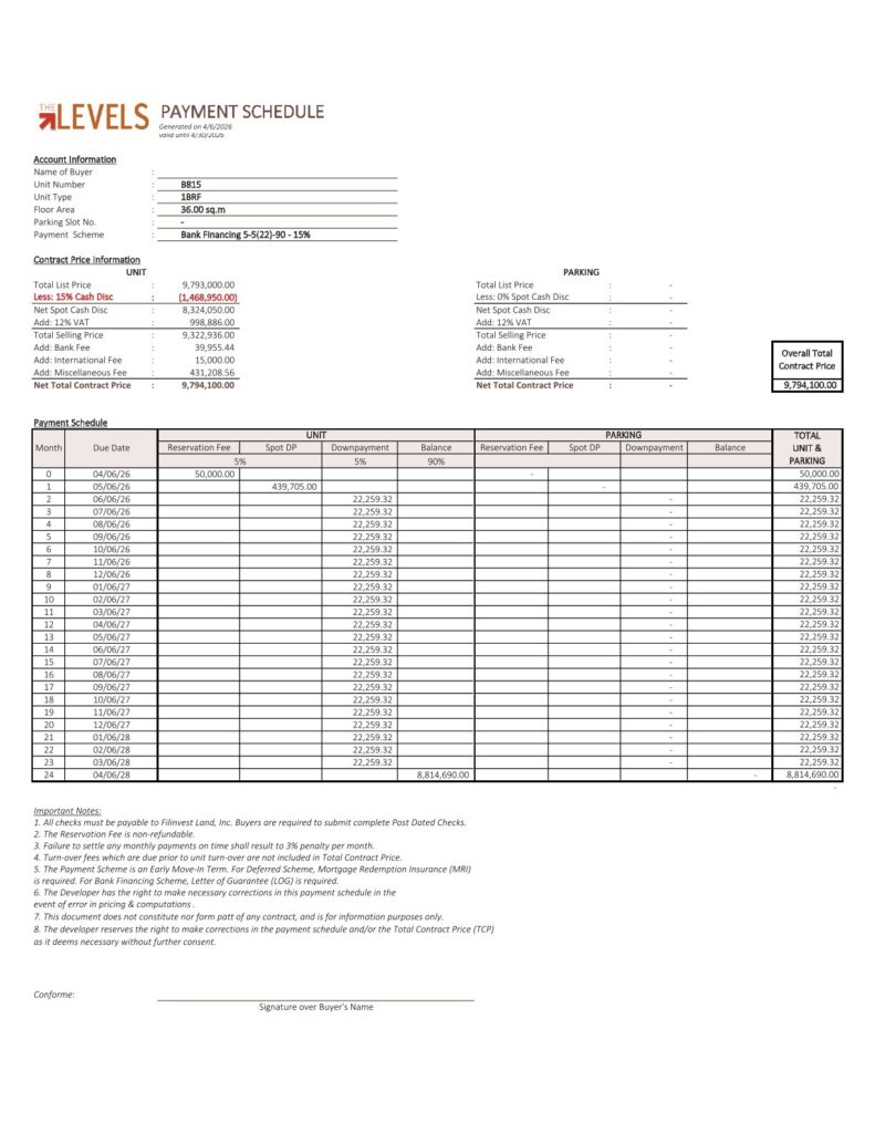 🏢 THE LEVELS Alabang 콘도 1베드F